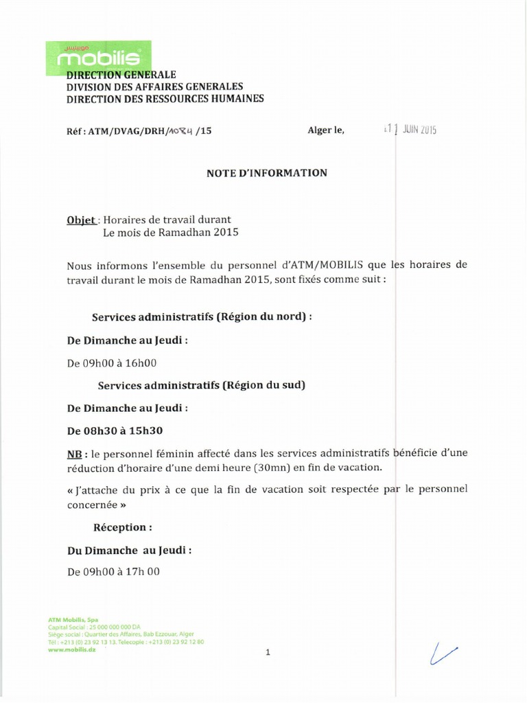 Https Info Agriculture Gouv Fr Gedei Site Bo Agri Instruction 2016 874 Telechargement from Quelques aspects meconnus du jeune du ramadan iqri org by iqri.org. Note de service portant rappel de l'horaire de travail applicable. La fixation de l'horaire de travail.que très exceptionnellement que la cour de cassation qualifie certains changement s d'horaires de modifications du contrat de travail nécessitant l'accord du salarié. 01 / 12 sujet : Changement d'horaire veuillez prendre note qu'à compter du (la date), votre horaire d'émission sera modifie de la façon suivante, du lundi au vendredi : Le dépôt direct de votre paie s'effectue à l'institution financière de à noter que les bulletins en format papier sont produits sur demande seulement. Horaires de travail (sans intérruption) : Exemple de lettre prete a lemploi.